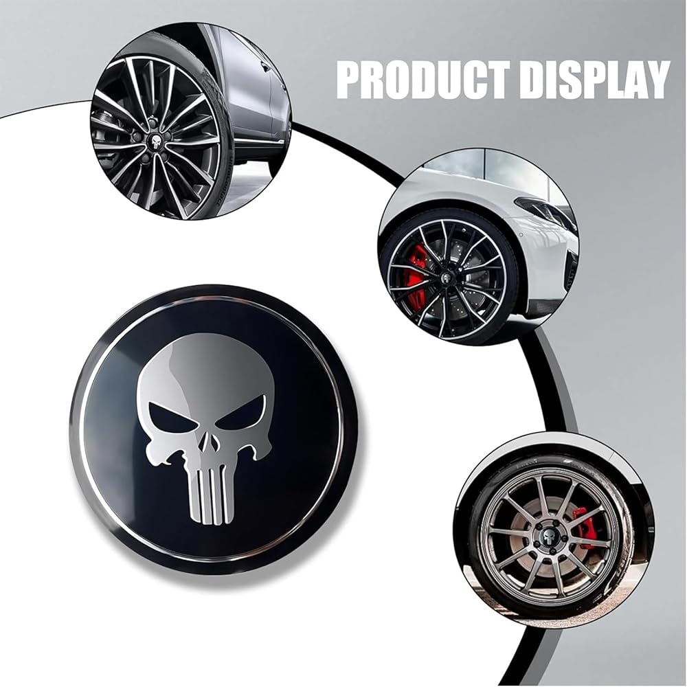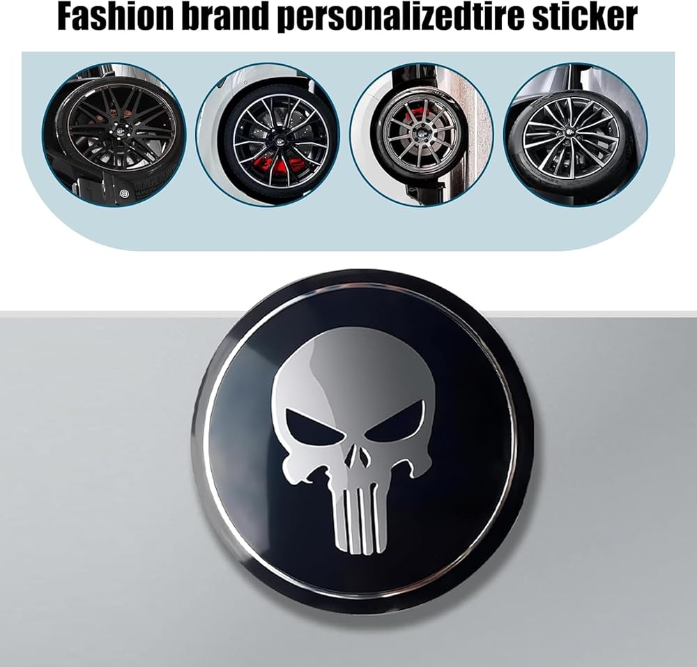 Arwrilt 4 PCS Car Wheel Hub Center Cap Stick, Scratch-Proof Skull Emblems Center Caps for Rims, Universal Wheel Center Caps Sticker Decoration, for Most Cars Wheel Accessories (Black)