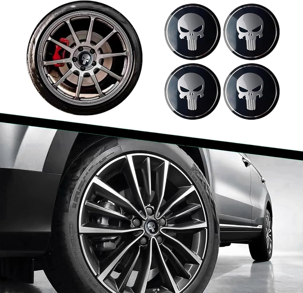 4 PCS Car Wheel Hub Center Cap Stick, Scratch-Proof Skull Emblems Center Caps for Rims, Universal Wheel Center Caps Sticker Decoration, for Most Cars Wheel Accessories (Black)