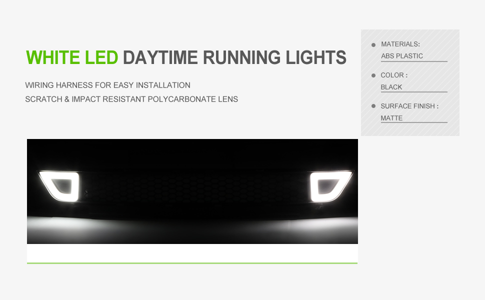 - {Stylish Appearance} White LED Daytime Running Lights. Matte Black Finish for Striking Looks; Gives Your Car a New Look.