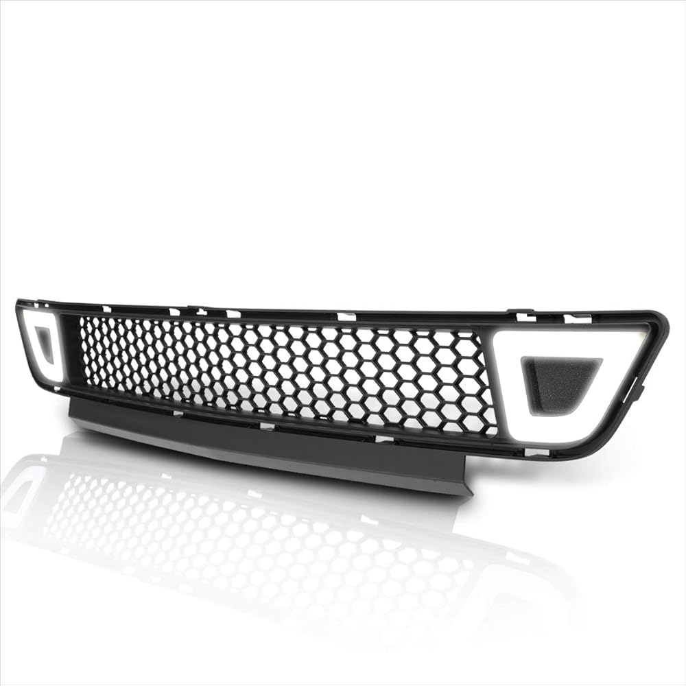 Honeycomb Mesh Front Lower Bumper Grille Grill w/LED Light Compatible with 15-17 Ford Mustang Base Ecoboost GT,Black