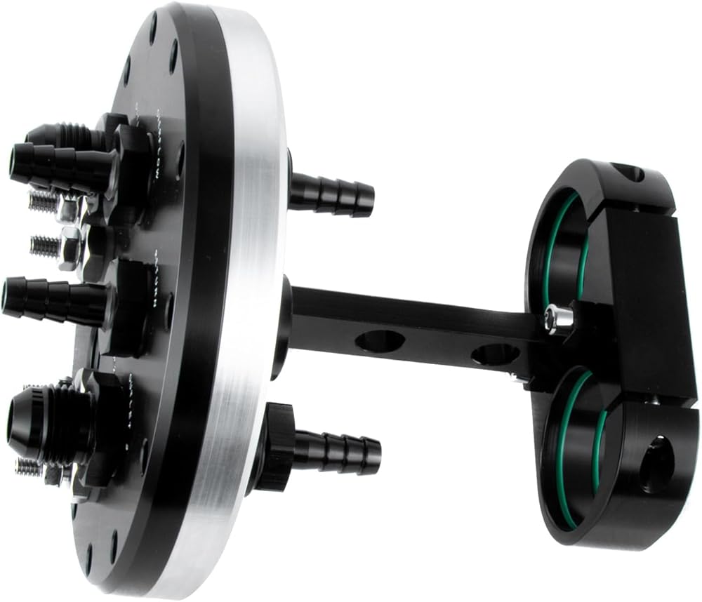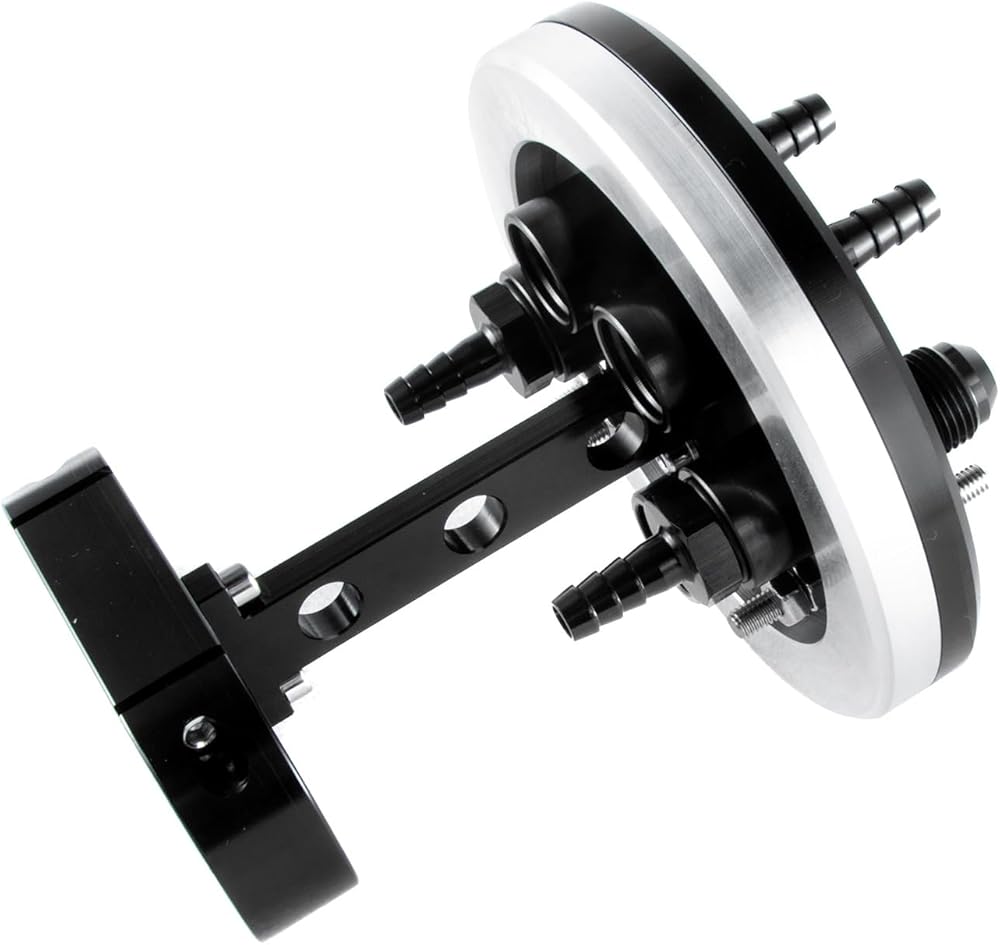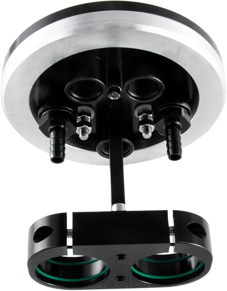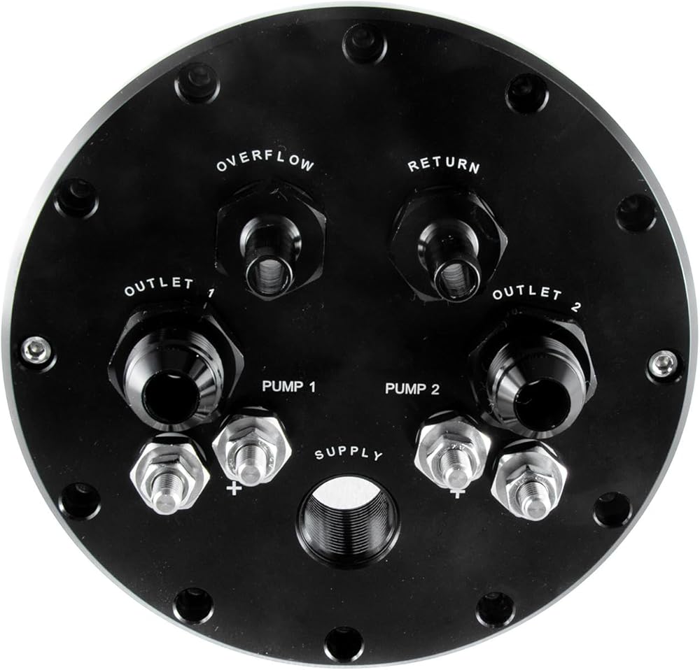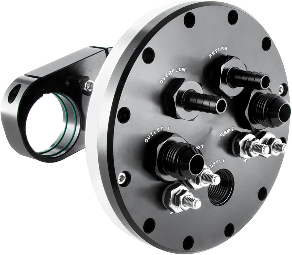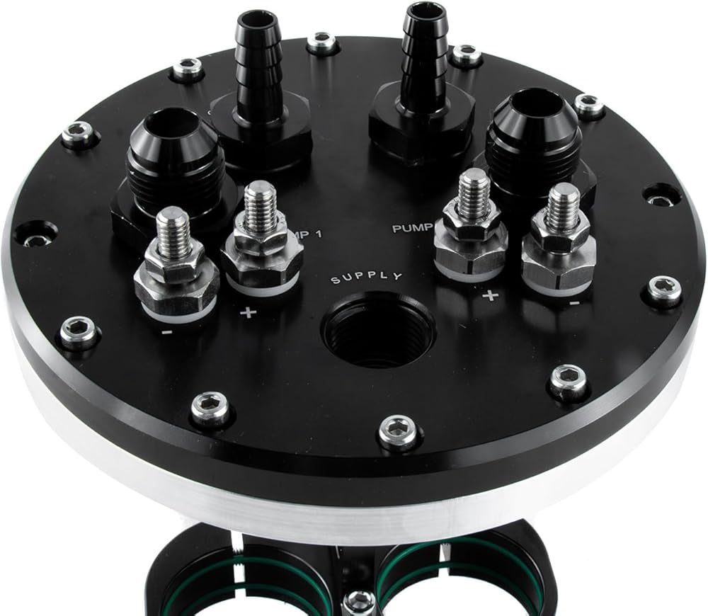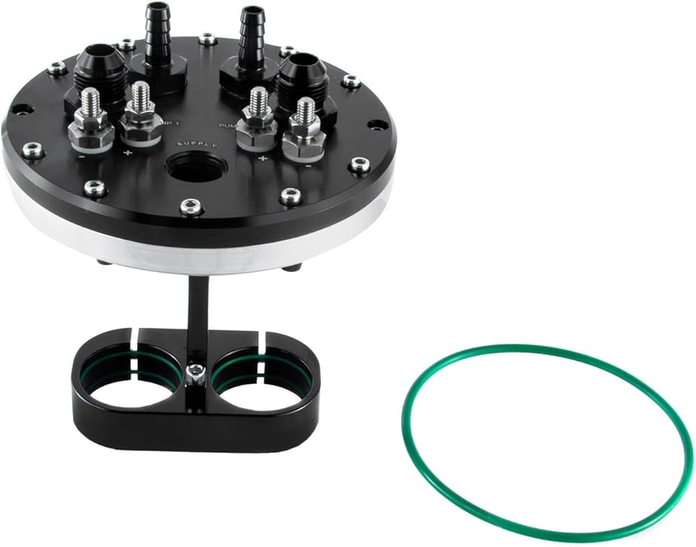 Anodized black, this alloy dual fuel pump hanger can be fitted with one or two pumps, and has dual stainless electrical terminals allowing the pumps to be staged separately