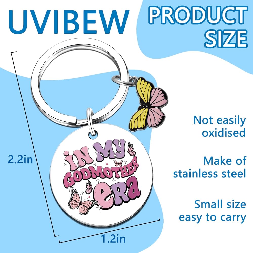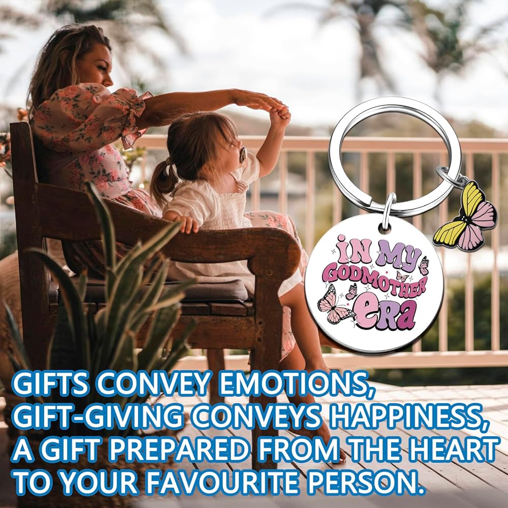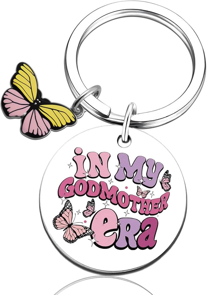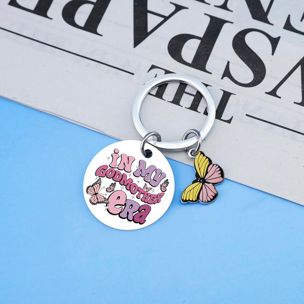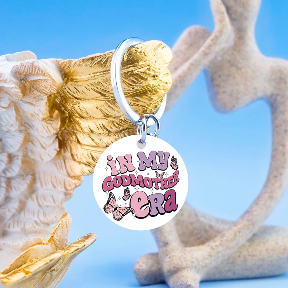 This godmother keychain is made of stainless steel and has the words “In My Godmother Era” engraved on the front, symbolizing the elegance and glory of godmotherhood. Paired with butterfly accessories, it shows the charm of godmothers while highlighting the important position of godmothers in children's lives. This is a warm and treasured gift, suitable for any occasion.