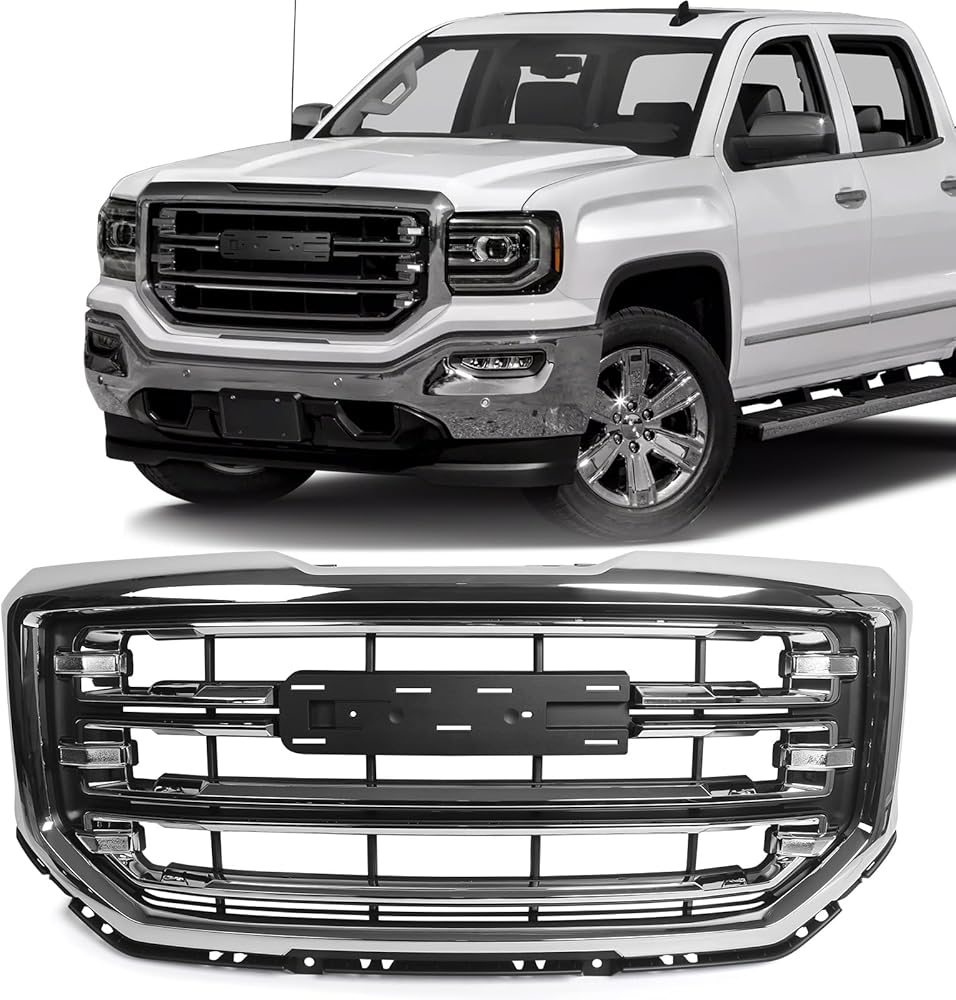 KACHIR 2016 2017 2018 front bumper grill for GMC Sierra 1500 with chrome not only improves aesthetics but also provides some level of protection to the front of the vehicle, helping to absorb impact from minor collisions.The grille helps keep the front end clean and prevents debris from directly hitting the radiator and other important components. The front grilles have the same performance as original parts. Strict quality control standards to build and test the front upper grill.