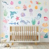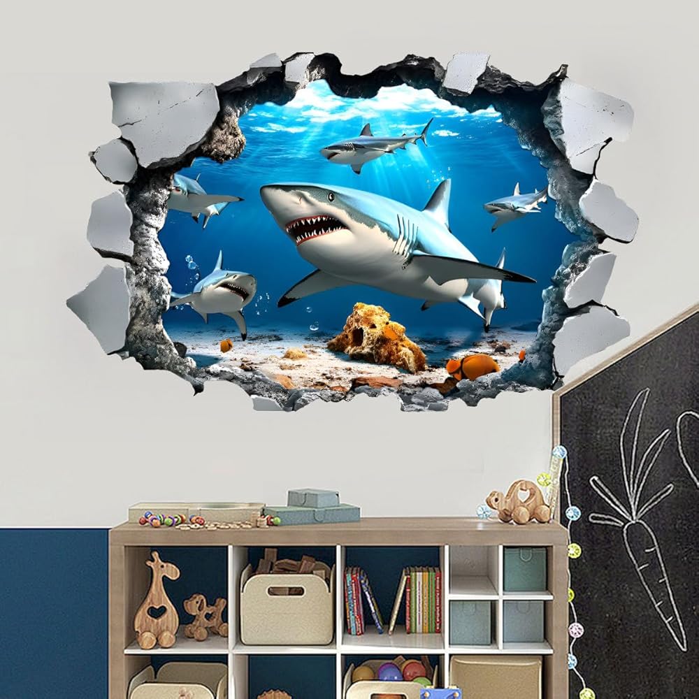 The wall stickers are themed with 3D under the sea shark. The wall decals are used for bedroom, playroom, nursery.