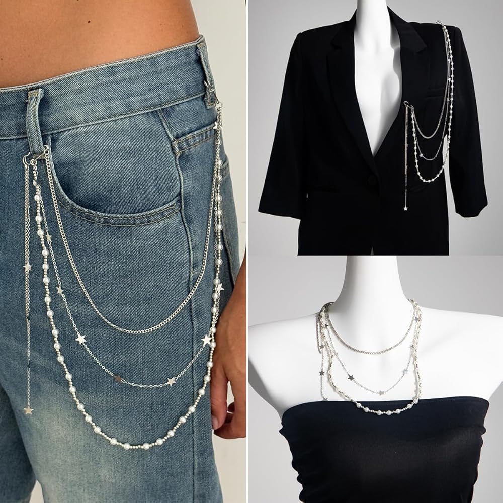 Unique Design: This isn't your ordinary brooch. This pearl chain tassel brooch is a versatile statement piece that can be pinned on your lapel or worn in creative ways. The long beaded chain link design lets you style it as a unique necklace, a decorative belt accent, or even a cool accessory for your bag. It's the kind of jewelry that adds instant texture and movement to your look
