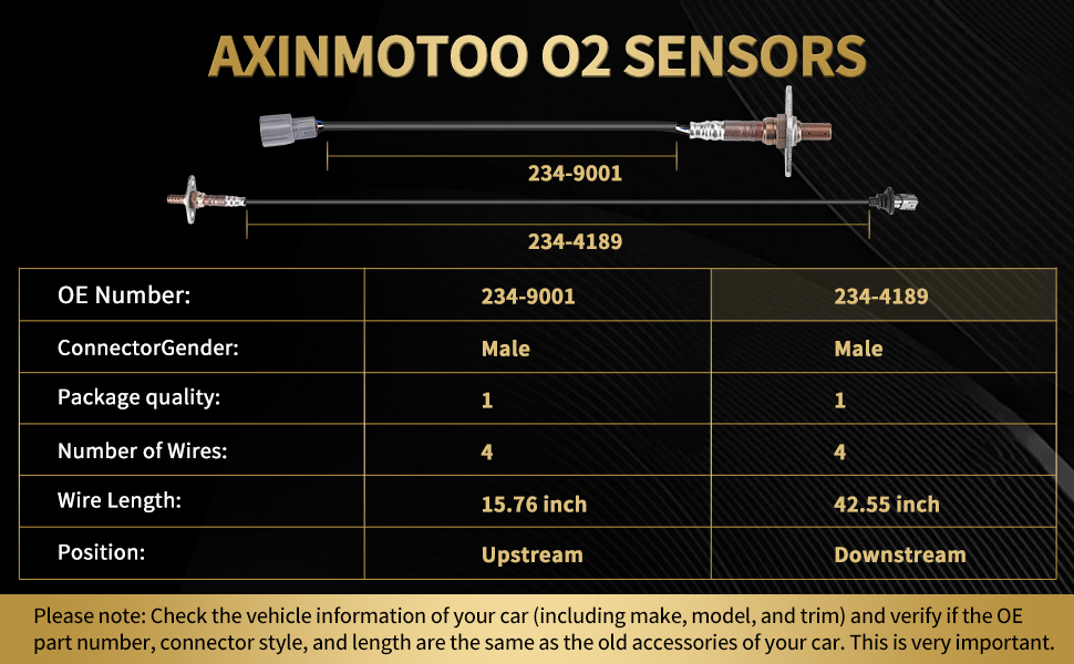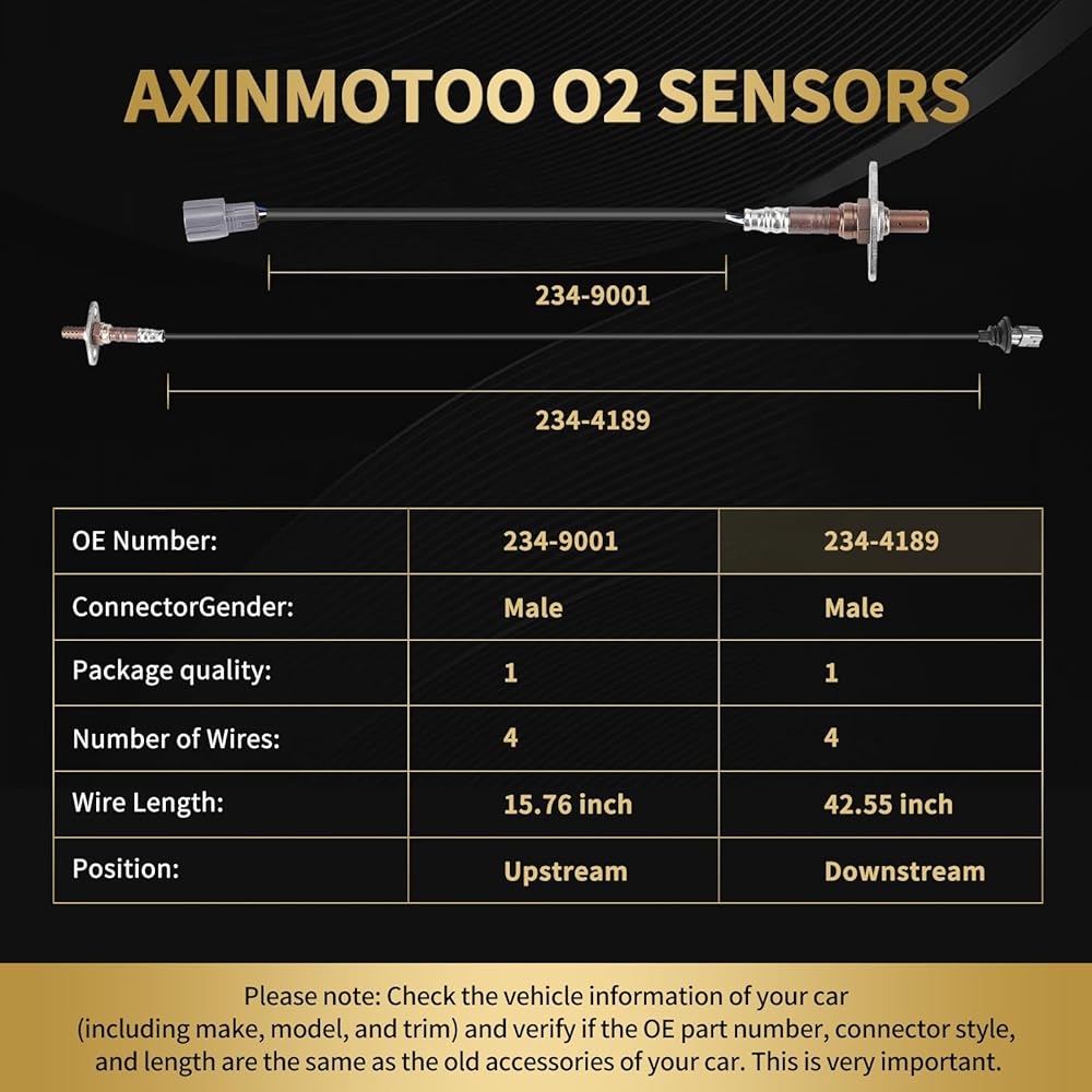Precision performance - AXINMOTOO automotive replacement oxygen sensors adopt advanced sensing technology, whose every oxygen sensor meets OE standards. It can accurately and quickly transmit oxygen content information back to the vehicle control system, and also improve the overall fuel economy by 5-15%. For better performance, we recommend replacing the O2 sensors every 50000–60000 miles.