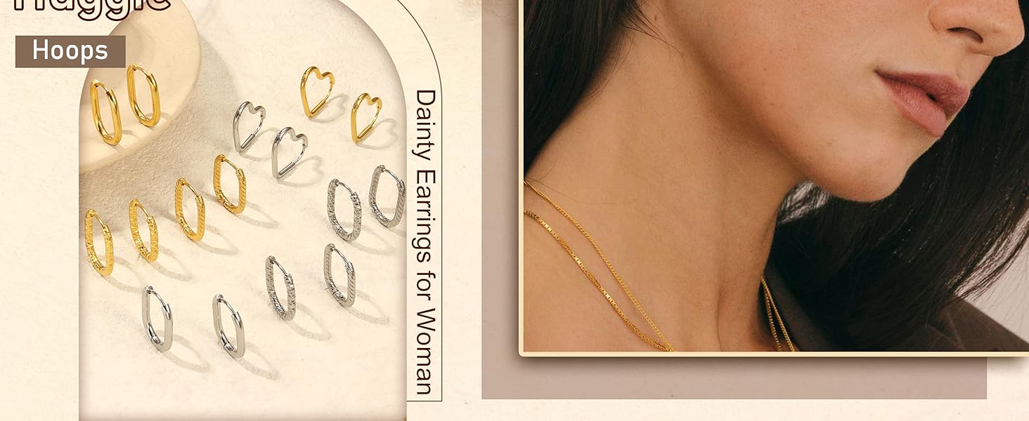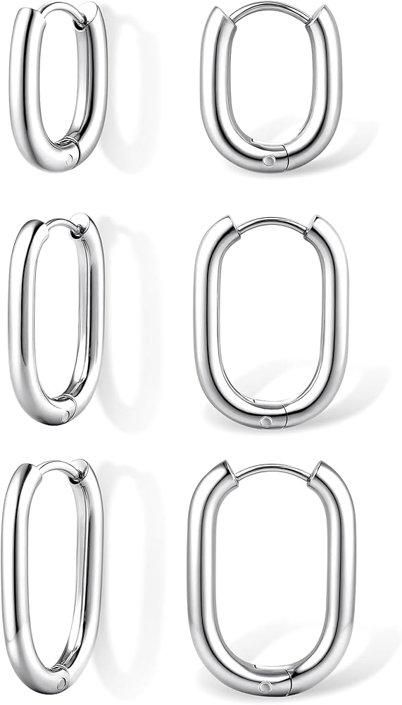 Chunky Hoop Earrings Set : This jewelry set features 3 pairs of stylish U-shaped hoop earrings in various designs and sizes. Perfect for diverse tastes and ear piercings, including first, second, third holes, and cartilage huggie. These charming huggie hoop earrings can be worn alone or paired with other ear jewelry