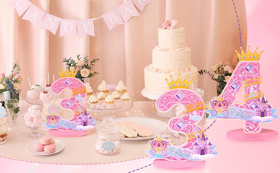 Princess Birthday Table Decoration: Ideal for crafting unforgettable memories, this beautiful number sign serves as an essential part of your princess party supplies. It's more than a decoration—it's the foundation for a truly magical celebration where your little princess feels like the star of her very own fairy tale
