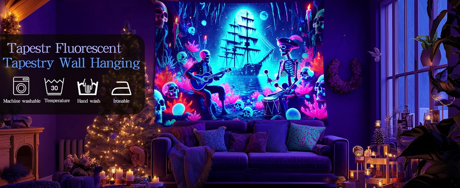 Stunning Black Light Effect – Watch this tapestry come alive under UV light! Glowing ghosts, pumpkins, and eerie details create a mesmerizing haunted atmosphere for nights.