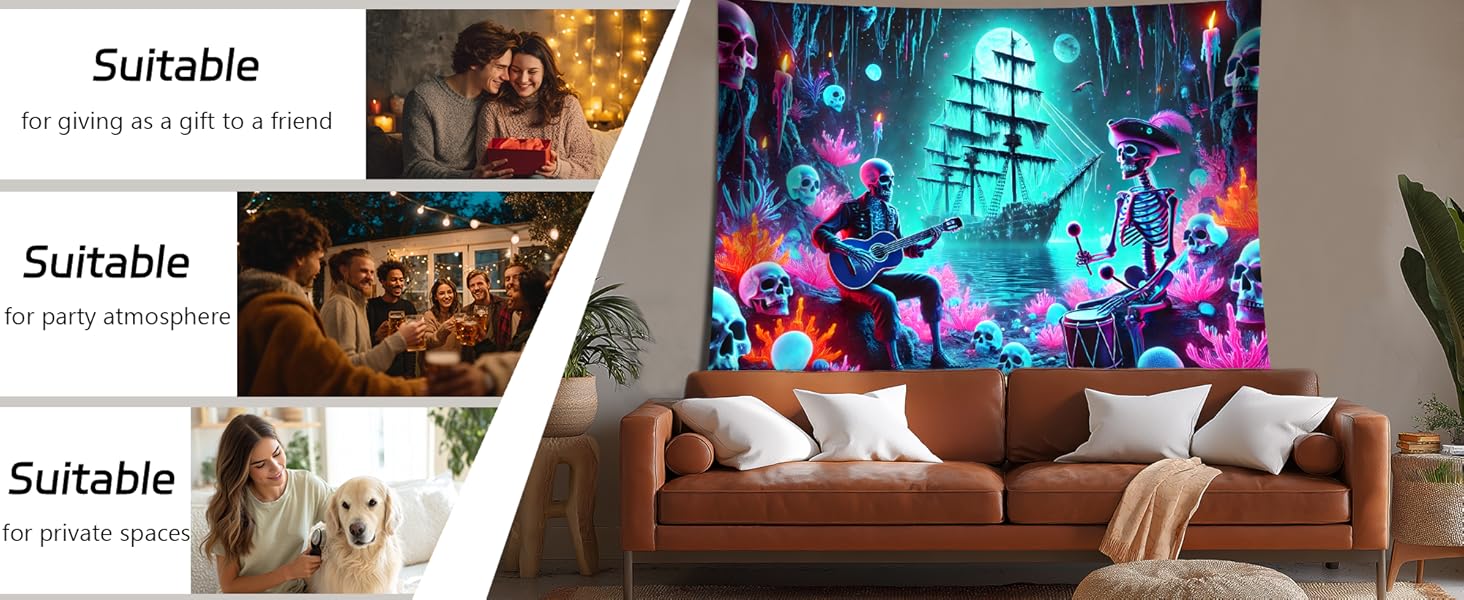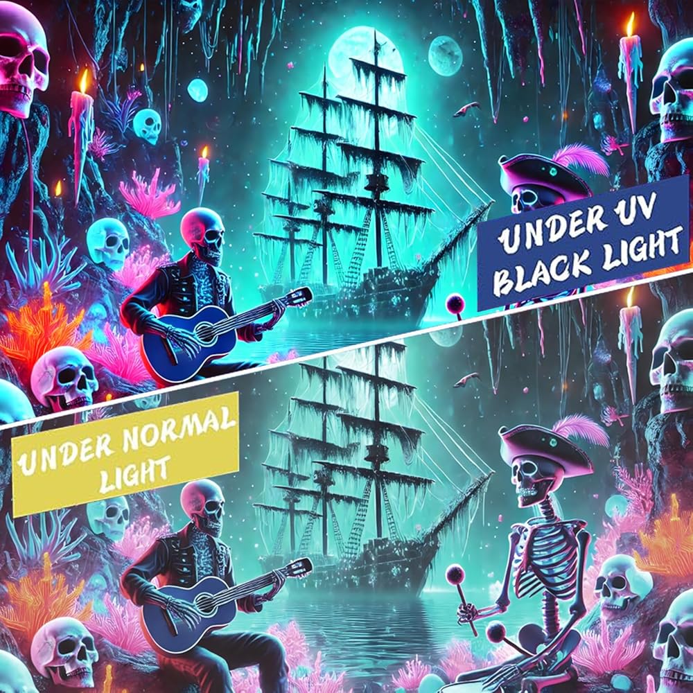 Vibrant Dual-Display Design – Bold colors pop in regular light, while hidden UV-reactive artwork glows under blacklight. Perfect for parties, photo booths, or year-round spooky decor.