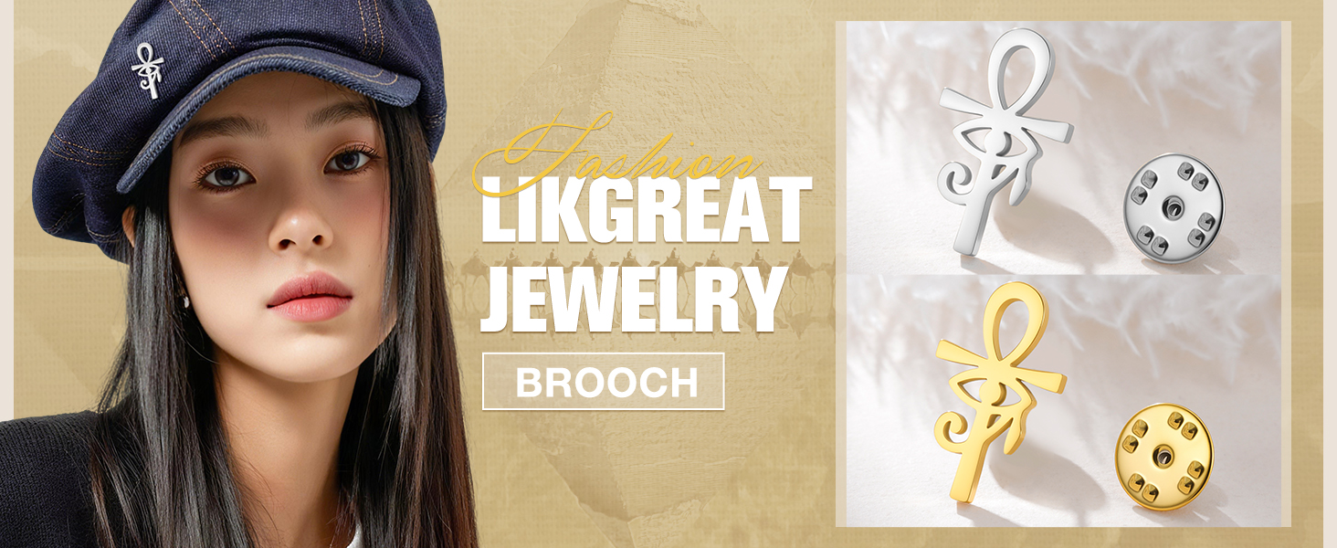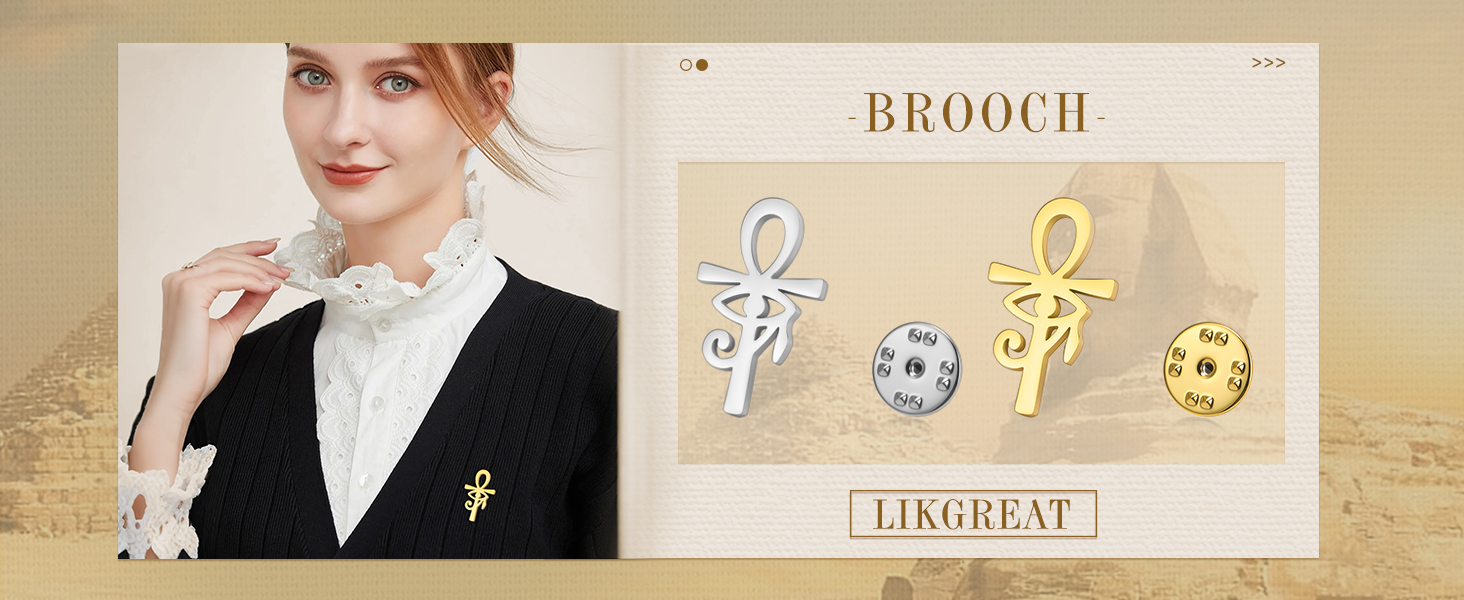 Design: This brooch combines two powerful Ancient Egyptian symbols: the Ankh, representing life and eternal strength, and the Eye of Horus, a well-known amulet for protection, healing, and spiritual guidance. A meaningful accessory for daily wear or special occasions