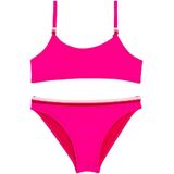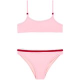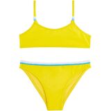 FIT AND FEEL: Bikini with adjustable top and laces embellished with beads. The color of the beads is reproduced on the tricolor detail of the briefs. The two-piece swimsuit is made of comfortable, resistant VITA by Carvico fabric that is resistant to chlorine and sunscreens