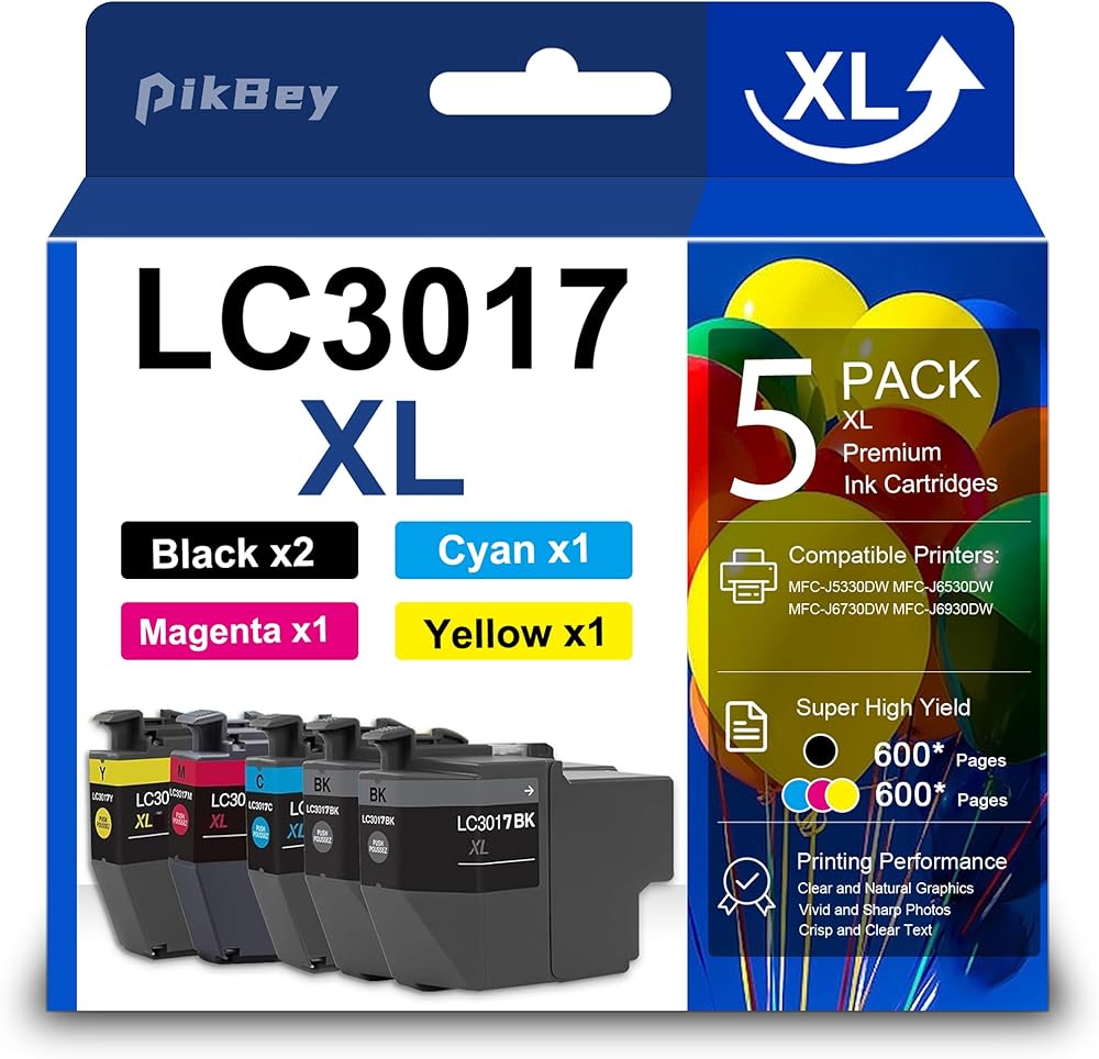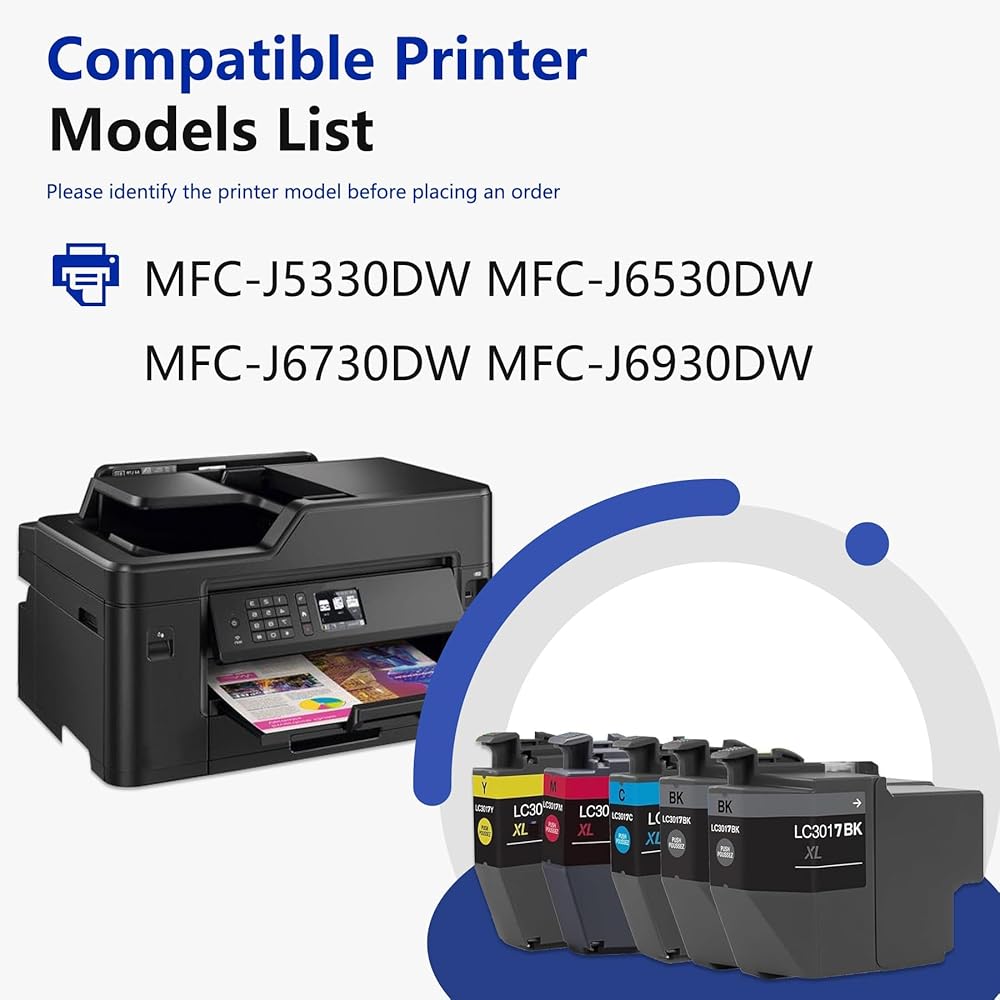 LC3017 Ink Cartridges High Yield Color Ink 5-Pack Replacement for Brother LC3017 XL Ink Cartridges Work with MFC-J5330DW MFC-J6530DW MFC-J6730DW MFC-J6930DW (LC3017BK/LC3017C/LC3017M/LC3017Y)