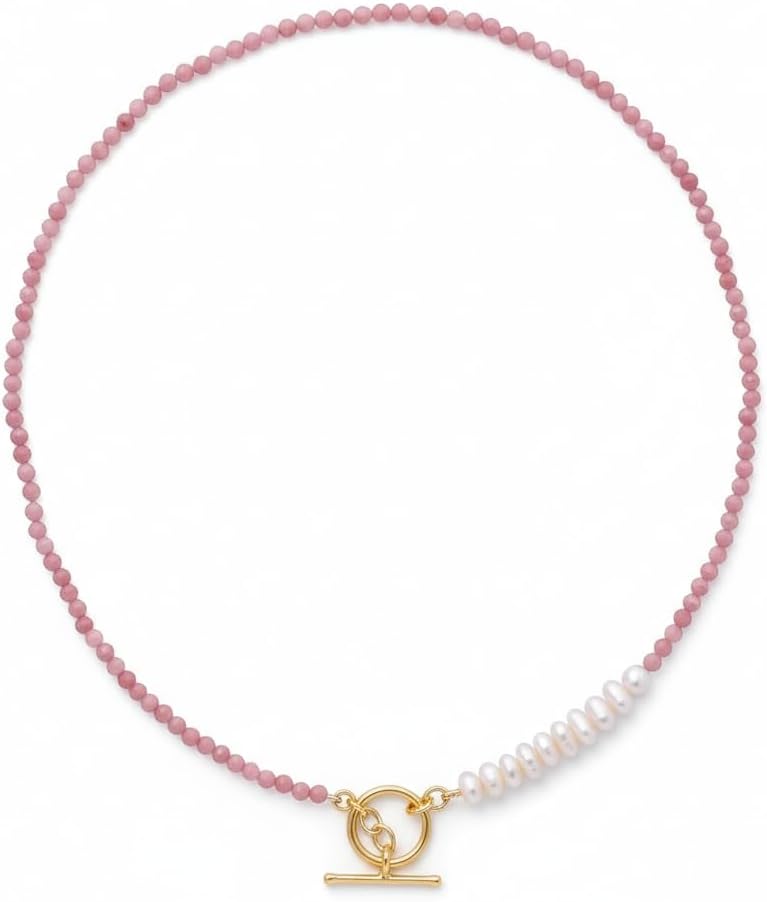 With a comfortable 17-inch choker length, this necklace can be worn alone for a bold statement or layered with longer chains and pendants for a modern, dimensional look. Crafted from natural stones and 14K gold plated silver, it is lightweight, durable, and easy to wear throughout the day.