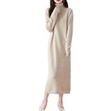 Long Sweater Women's Dress Knitted Turtleneck Long Sleeve 100% Merino Wool Pullover Winter Warm Tops in Kuwait