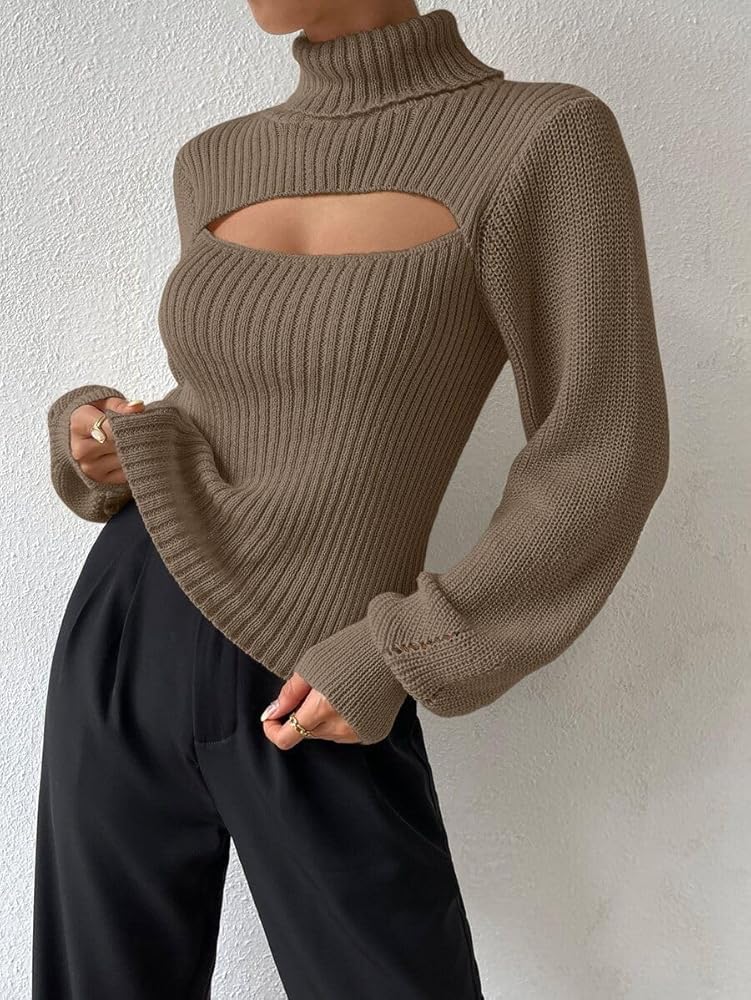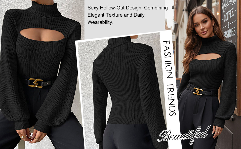ELEGANT Turtle NECKLINE: Elevate your style with this sexy turtle neck top for women, featuring a trendy High Neck and elegant Bishop Sleeves. This ribbed turtleneck sweater offers a sophisticated silhouette that is both modern and timeless for your wardrobe.