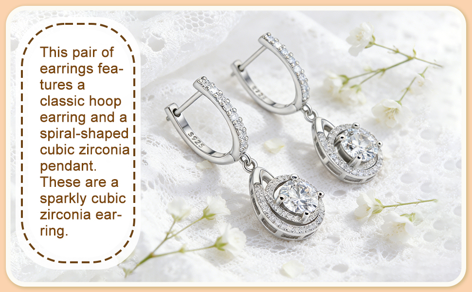 ♥ Dangle hoop earrings are made up of classic cubic zirconia loop earrings and spiral-shaped cubic zirconia pendants. Complete your look with these classic women's loop earrings! Classic gold loop earrings will be one of the versatile accessories for any of your outfits.This will earn you more compliments!