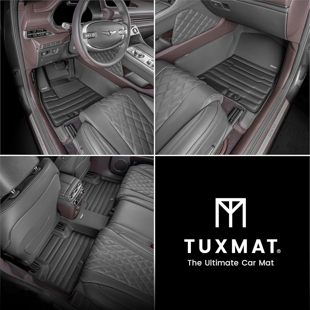 TuxMat - for Genesis GV80 5-Seater 2021-2024 Models - Custom Car Mats - Maximum Coverage, All Weather, Laser Measured - This Full Set Includes 1st and 2nd Rows Black