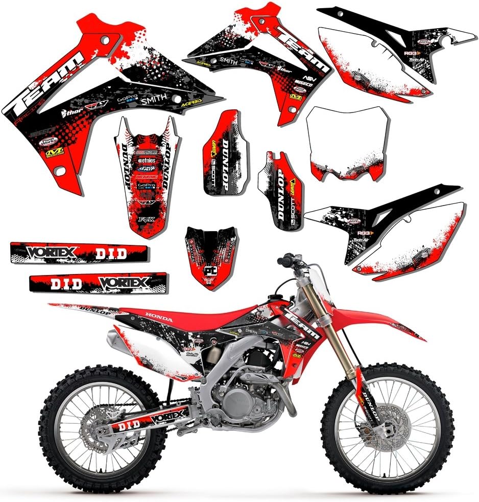 Compatible with Honda 2003-2007 CRF 150F/230F. The set includes stickers for- Rad scops and gas tank, front and rear fenders, swingarms, fork guards, all 3 number plates,and airboxes on most models.