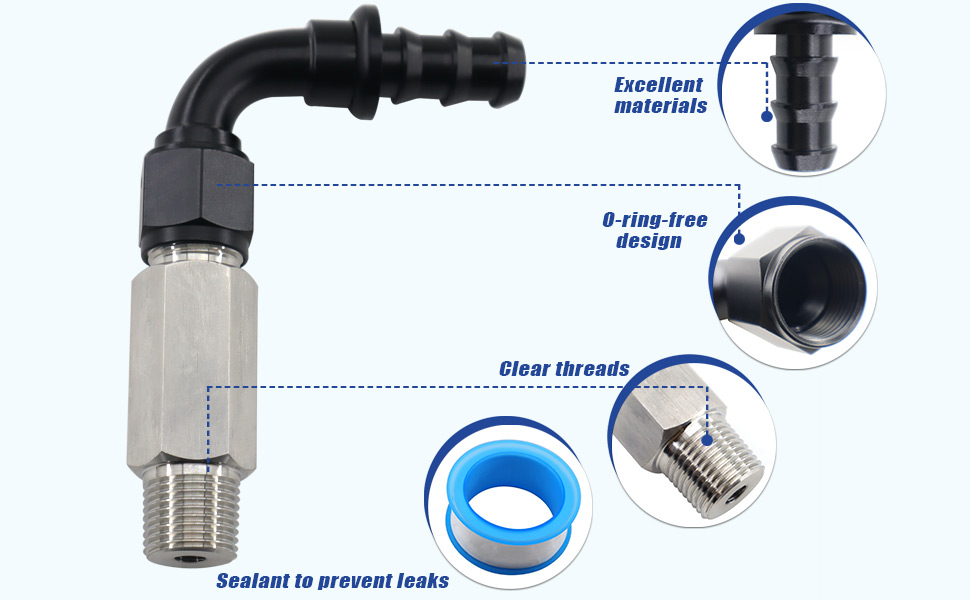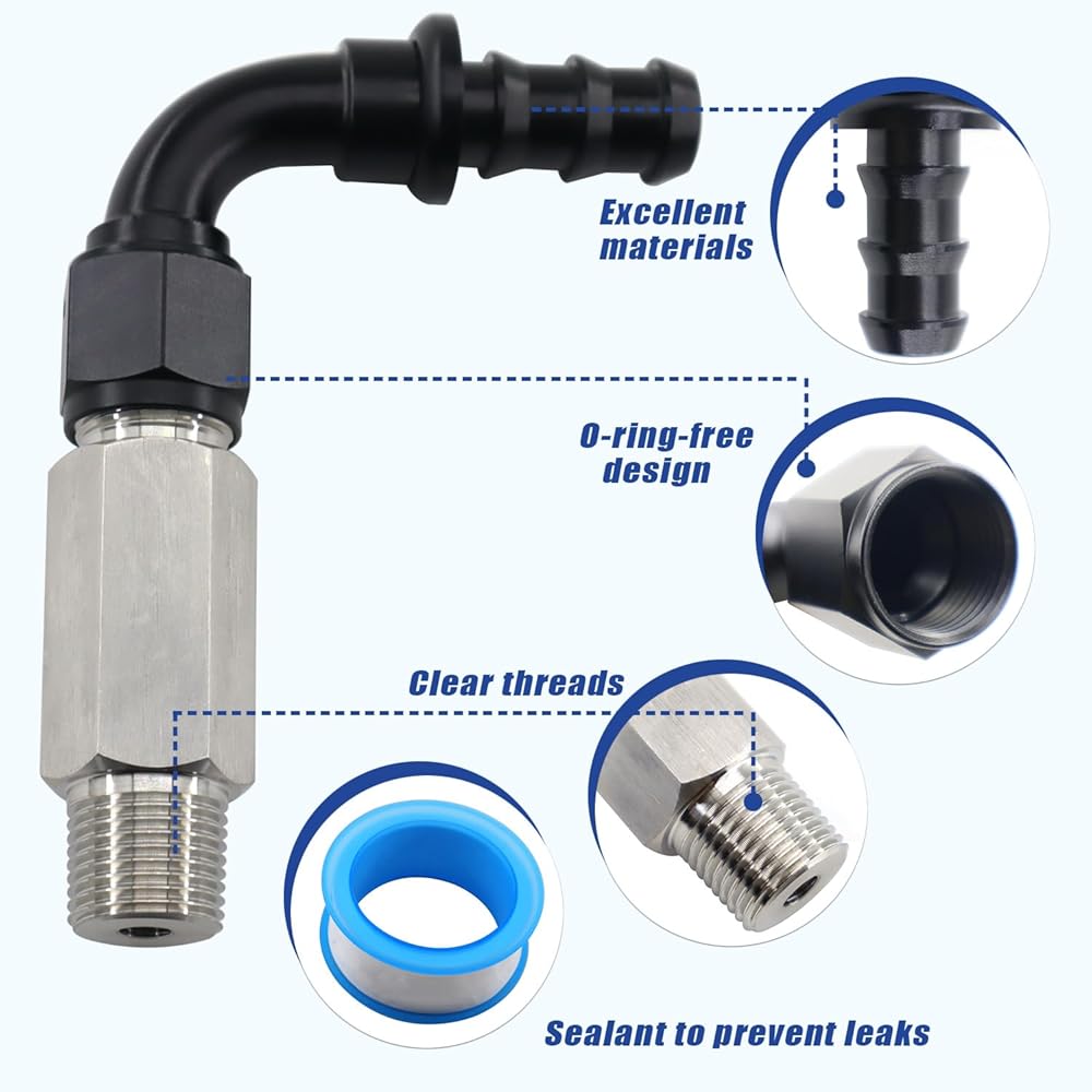 Leak-Free Sealing— Features 1/2-14 NPT inlet and 10AN outlet threads, with included sealant/PTFE tape for a tight, leak-proof connection.
