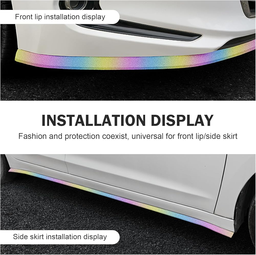 2.5m Soft Rubber Car Front Bumper Spoiler Lip & Side Skirt Protector - Non-Fade Scratch-Resistant Guard Strip Air Dam, Shiny Colorful Fashion Decal, Universal for Most Vehicles (Multicolored)