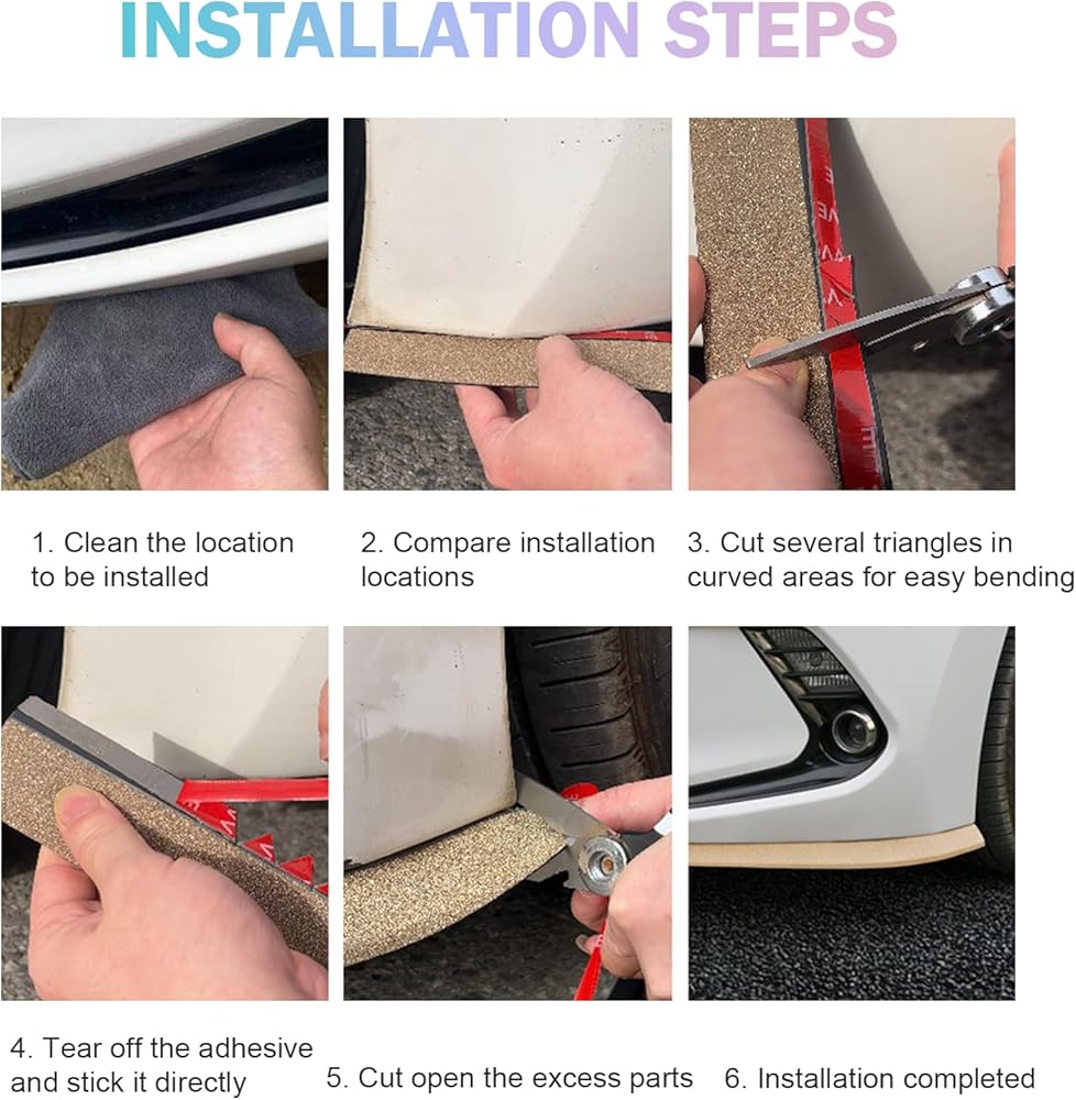 Waterproof: The bumper spoiler lip protector prevents material cracking from prolonged moisture exposure during rainy drives or high-pressure car washes. It remains securely attached over extended use and retains its vibrant color even with long-term outdoor exposure, resisting fading or yellowing.
