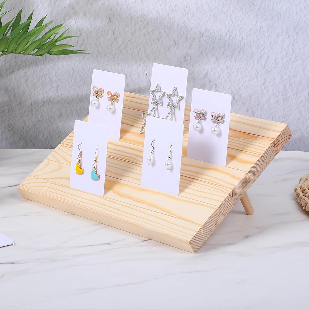 Multi - functional & Quality Build: This earring display for vendors can show and store earrings. It can also hold photos or idol cards and serve as decor. Made of wood, the holder is lightweight yet sturdy. Paper - made earring display cards have 2 pre - drilled holes for secure earring holding.