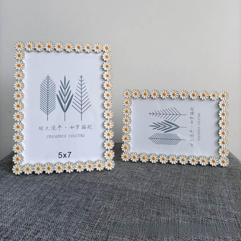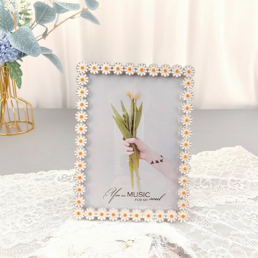5x7 inch Exquisite Small Daisy Metal Photo Frame,with Glass Front Modern Decorative Floral Photo Frame,Photo Display for Tabletop Centerpiece Or hang the wall display