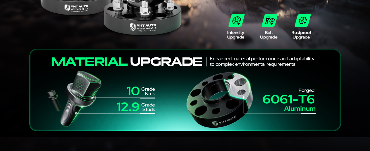 Superior Safety And Stability: Hubcentric wheel spacers - support and center the wheel to better resist impact loads from different road conditions and eliminate the risk of vibration. CNC automatic processing ensures high accuracy and stability. These forged 6061 t6 aircraft aluminum wheel spacers are stronger and more durable, and with heat treated 12.9 grade studs (SGS Test Approved), making them less prone to breaking, and the anodized surface provides additional resistance to corrosion