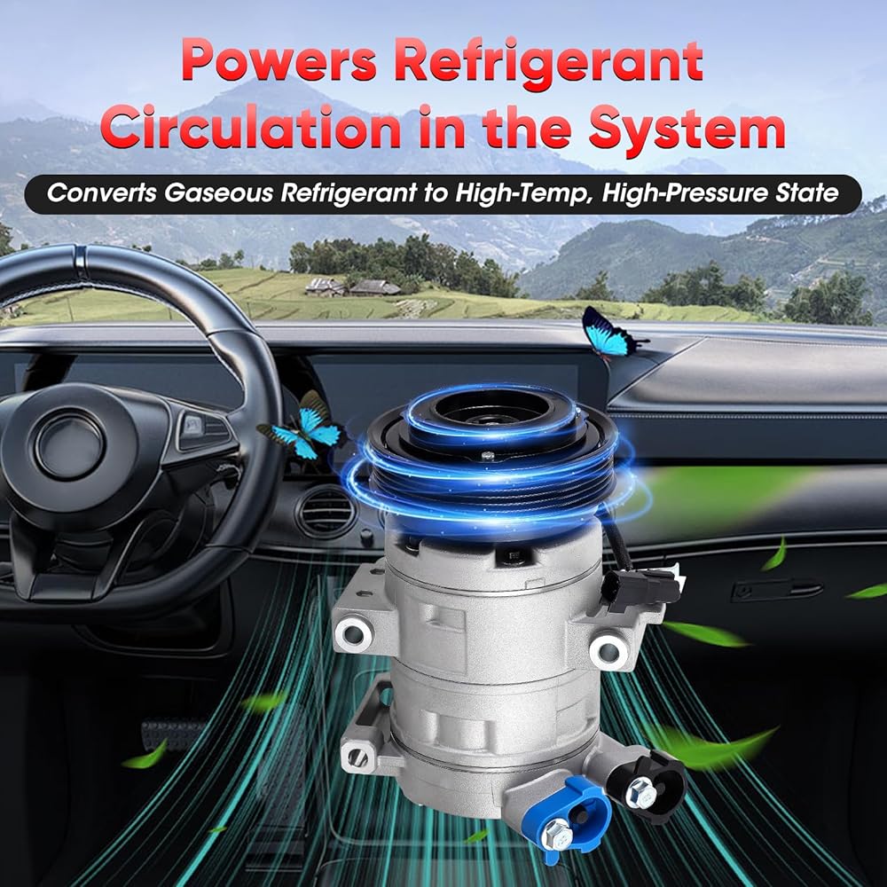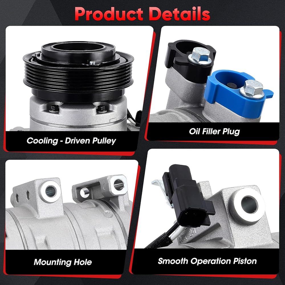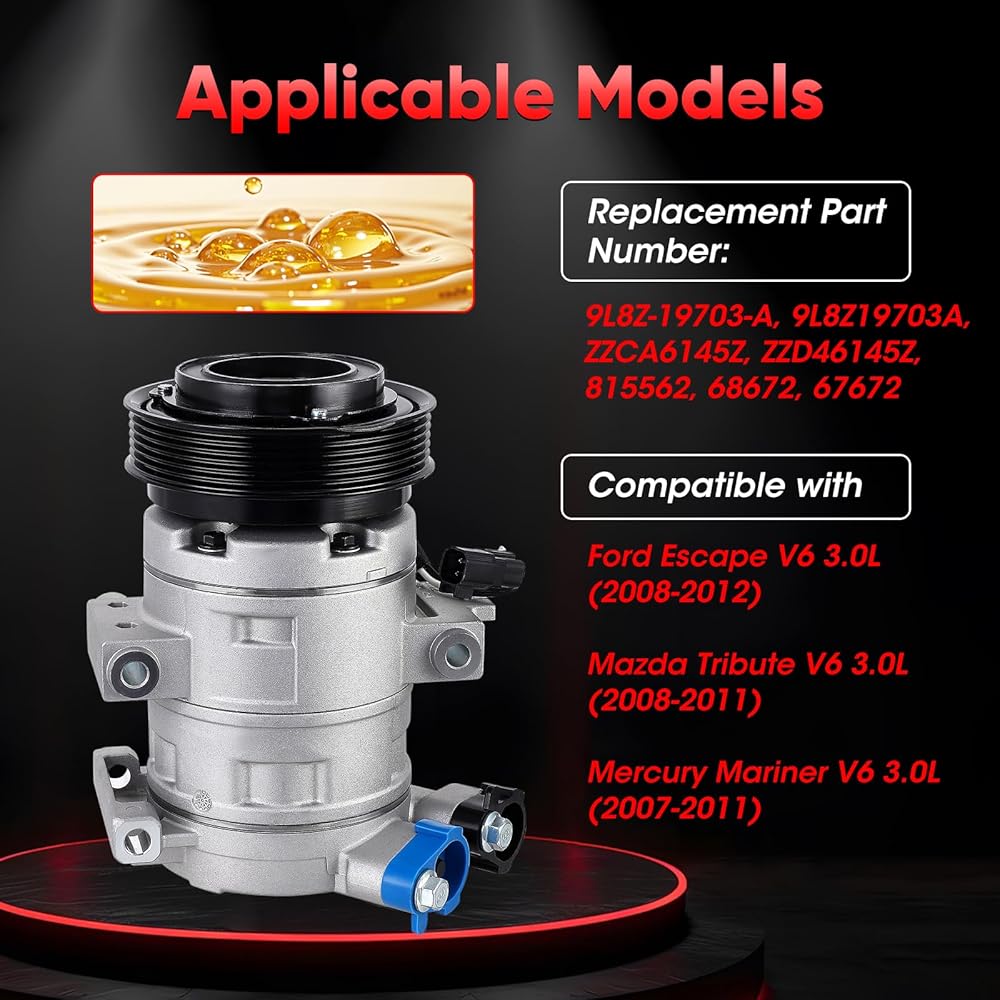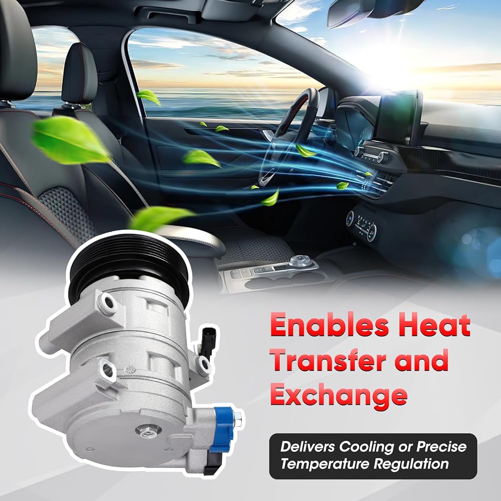 [Powerful Chill, Peaceful Drive]: Experience swift comfort with a robust 3700 kal/h cooling capacity that quickly lowers cabin temperature. Designed for tranquility, AC Compressor 9L8Z19703A 's low-vibration, low-noise operation ensures smooth and silent performance, letting you enjoy a refreshingly cool and perfectly quiet interior on every journey