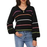 Comfortable and Soft Fabric: this women's striped V-neck sweater is made of 52% viscose, 26% polyester and22% polyamide, soft and gentle against the skin for all-day comfort. It offers your warmth for cool days and stay breathable, preventing stuffiness during long time wear