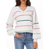 Striped V-Neck Design: this women's long sleeve knit Sweater Top features a creative striped pattern and a V-neck cut, adding cute and fashionable style to your look. The perfectly sized V-neck enhances elegance, making you look slimmer visually