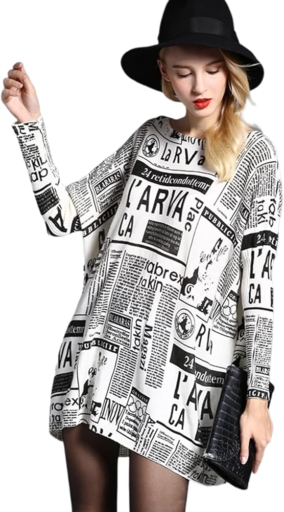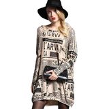 Oversized Newspaper Printing Sweater Dresses