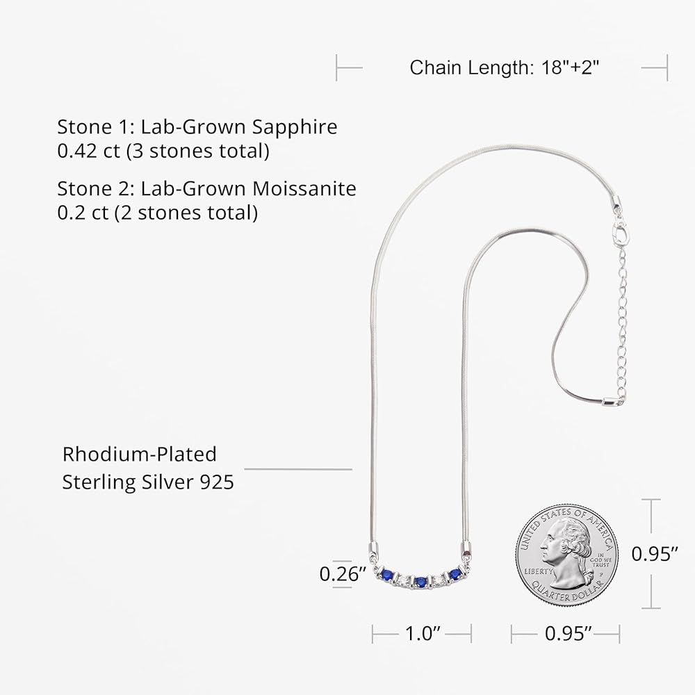 Sapphire and Moissanite Bar Necklace for Women, Lab-Grown Blue Sapphire and Moissanite Snake Bone Chain in Rhodium Plated 925 Sterling Silver, Anniversary Engagement Gift, September Birthstone Jewelry for Her