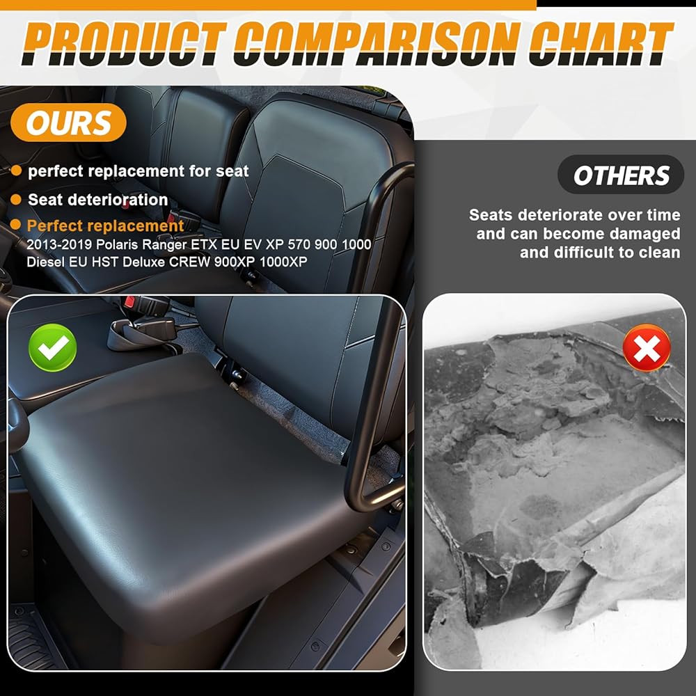 Seat Bottom Cushion Compatible with 2013-2019 Polaris Ranger ETX EU EV XP 570 900 1000 Diesel EU HST Deluxe Crew 900XP 1000XP, Replacement for 2684966-070 Driver Side, Charcoal