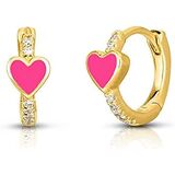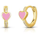 Heart and cubic zirconia design – A bold enamel heart charm (4.5x5mm) sits at the center of the huggie hoop, accented by cubic zirconia stones for delicate sparkle.