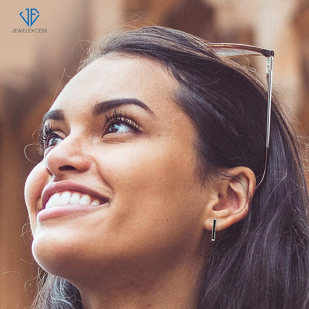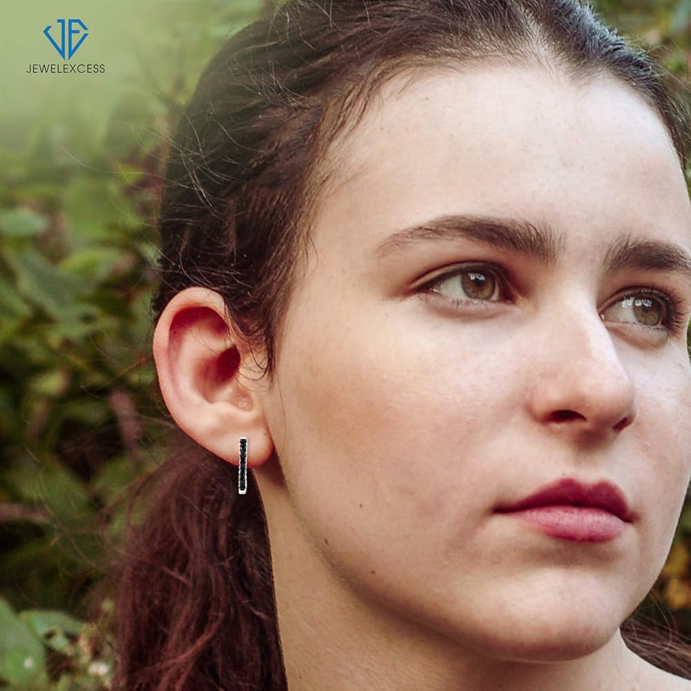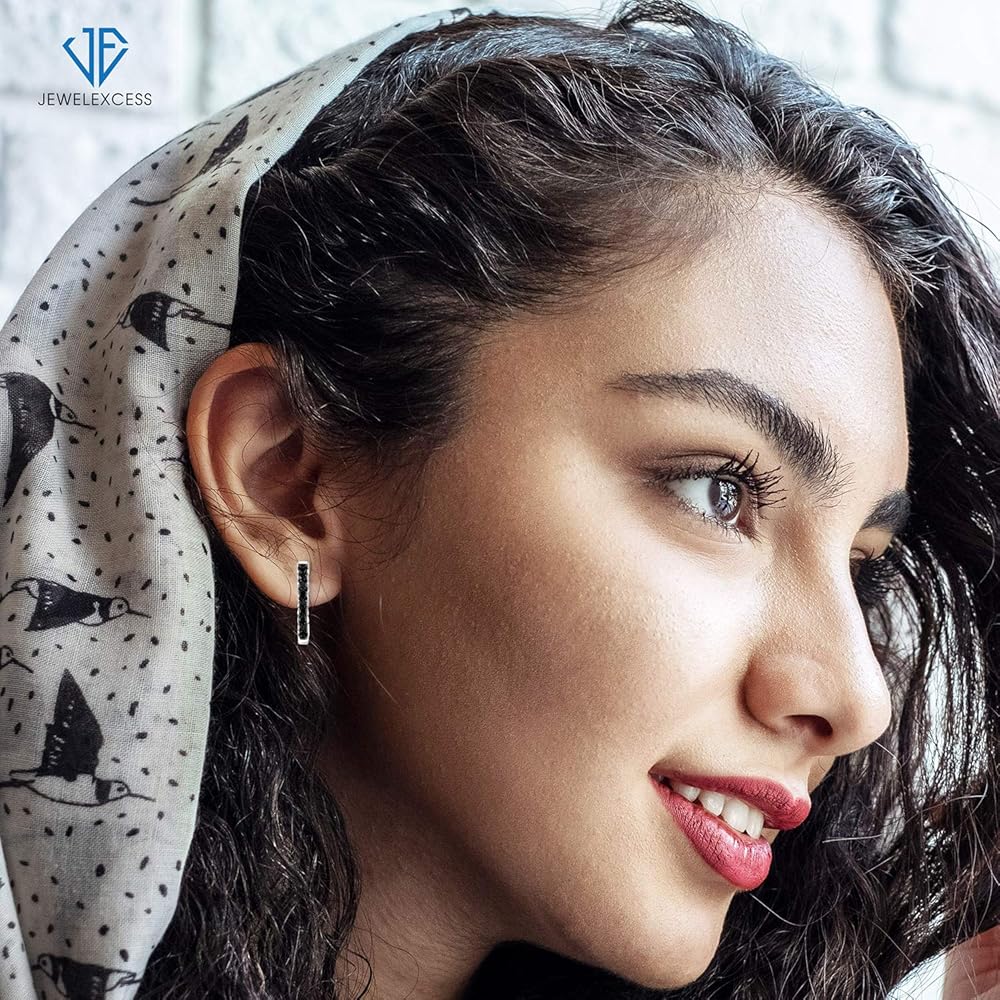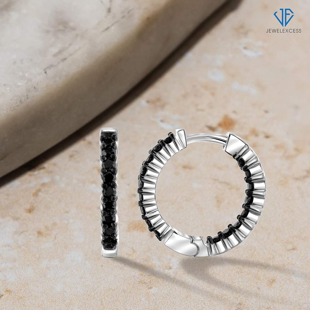 JEWELEXCESS Black Diamond Earrings Women – 1-Carat Black Diamonds Sterling Silver Hoop Earrings Small – Hypoallergenic Hoop Earrings – Small Hoop Earrings Diamond Hoops – Black Hoop Earrings for Women