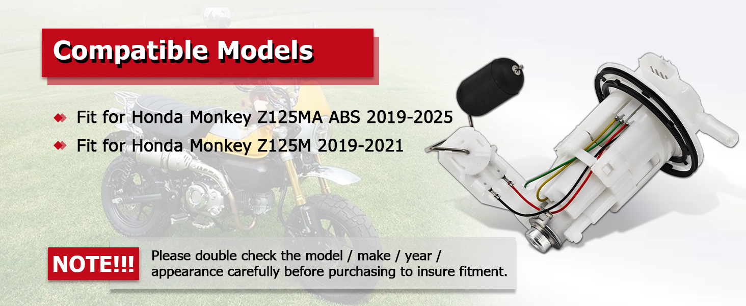 【Important Compatibility Notice】: This fuel pump assembly is only compatible with Honda Monkey Z125MA models (2019-2024) equipped with ABS anti-lock braking system. Please confirm your vehicle's specific configuration before placing your order
