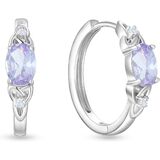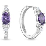 Size&Stones:Birthstone Hoop Earrings,height:0.63"(16mm),width:0.2"(5mm),set with 1.5mm round brilliant-cut cubic zirconia and 5x7mm oval-cut created amethyst