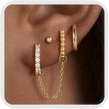 Earrings Sets for Multiple Piercing: Including 1 pairs gold flat back stud earrings and 3 pairs hoop earrings. Stud and hoop earrings set for multiple piercings, such as cartilage earring, helix piercing, first hole, second hole, third hole, tragus piercing, etc. Feel free to match your style!