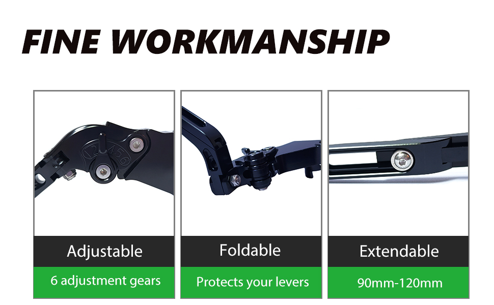 Convenient to Use: With folding function, the clutch brake lever can prevent from being broken,can be folded up when parking; Motorcycle levers anodized with beautiful glossy and vibrant finish, makes your motorcycle stand out from the crowd