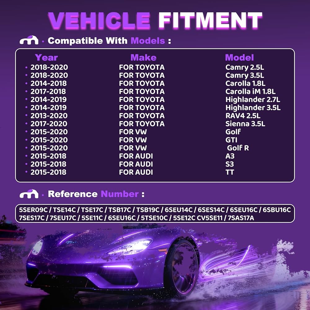 『Suitable Vehicle Model』: for TOYOTA (2018-2020) Camry 2.5L & 3.5L / (2014-2018) Carolla 1.8L / (2017-2018) Carolla iM 1.8L / (2014-2019) Highlander 2.7L & 3.5L / (2013-2020) RAV4 2.5L / (2017-2020) Sienna 3.5L / for VW (2015-2020) Golf & GTI& Golf R / for AUDI (2015-2018) A3 & S3 &TT.