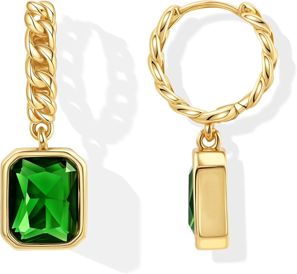 [Thoughtful Gift] Packaged in an elegant gift box, these gold emerald hoop earrings make a heartfelt present for birthdays, anniversaries, or holiday celebrations. The unique vintage-inspired design of these earrings suits fashion-forward individuals, ensuring these may birthstone earrings will be cherished as a stylish, distinctive keepsake