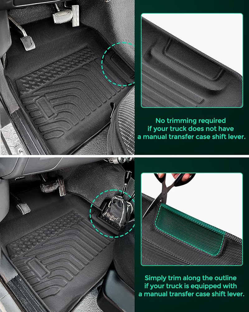Made from TPE, these rubber floor mats for trucks are built for everyday driving and long-term use. As all weather floor mats for trucks, they help manage mud, snow, and spills commonly tracked into work trucks and daily drivers. A practical option for those searching for truck floor mats f150, weather mats, or all weather floor mats f150 that remain flexible across seasonal temperature changes.