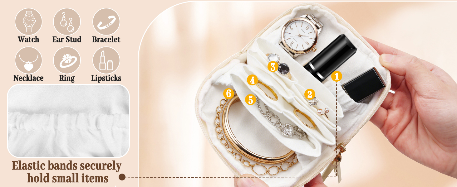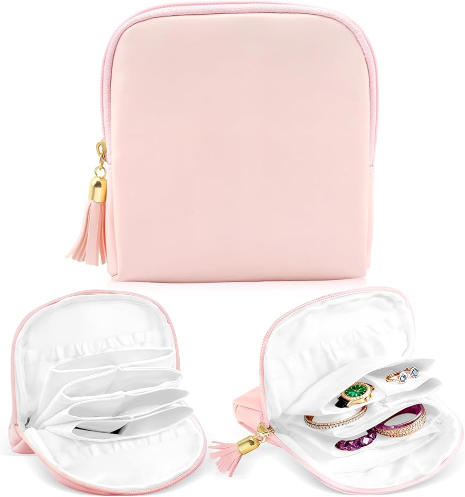 Perfectly Size: Designed as a small travel jewelry organizer, this mini travel jewelry case boasts perfectly compact dimensions. Jewelry travel pouch fits easily into luggage case, totes, or even clutches without occupying much space. Functioning like a small jewelry pouch, travel jewelry pouch still has ample room to organize essential jewelry pieces, making it ideal for travelers seeking tidiness