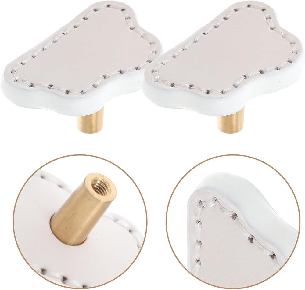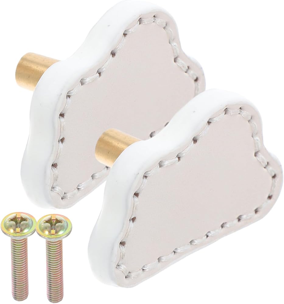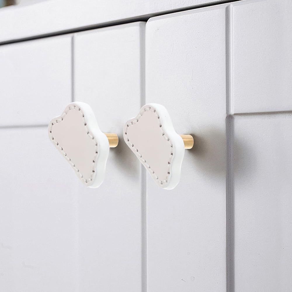 Cloud Shape Brass Drawer Pull Handles for ’s Wardrobe Nursery Dresser, Single Hole White Leather Cabinet Knobs, 2pcs Set