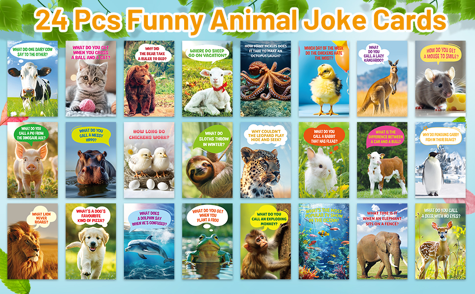 • تشمل العبوة: لا يوجد تكرار، 24 بطاقة تهنئة على شكل حيوانات مضحكة مع 24 ظرفًا