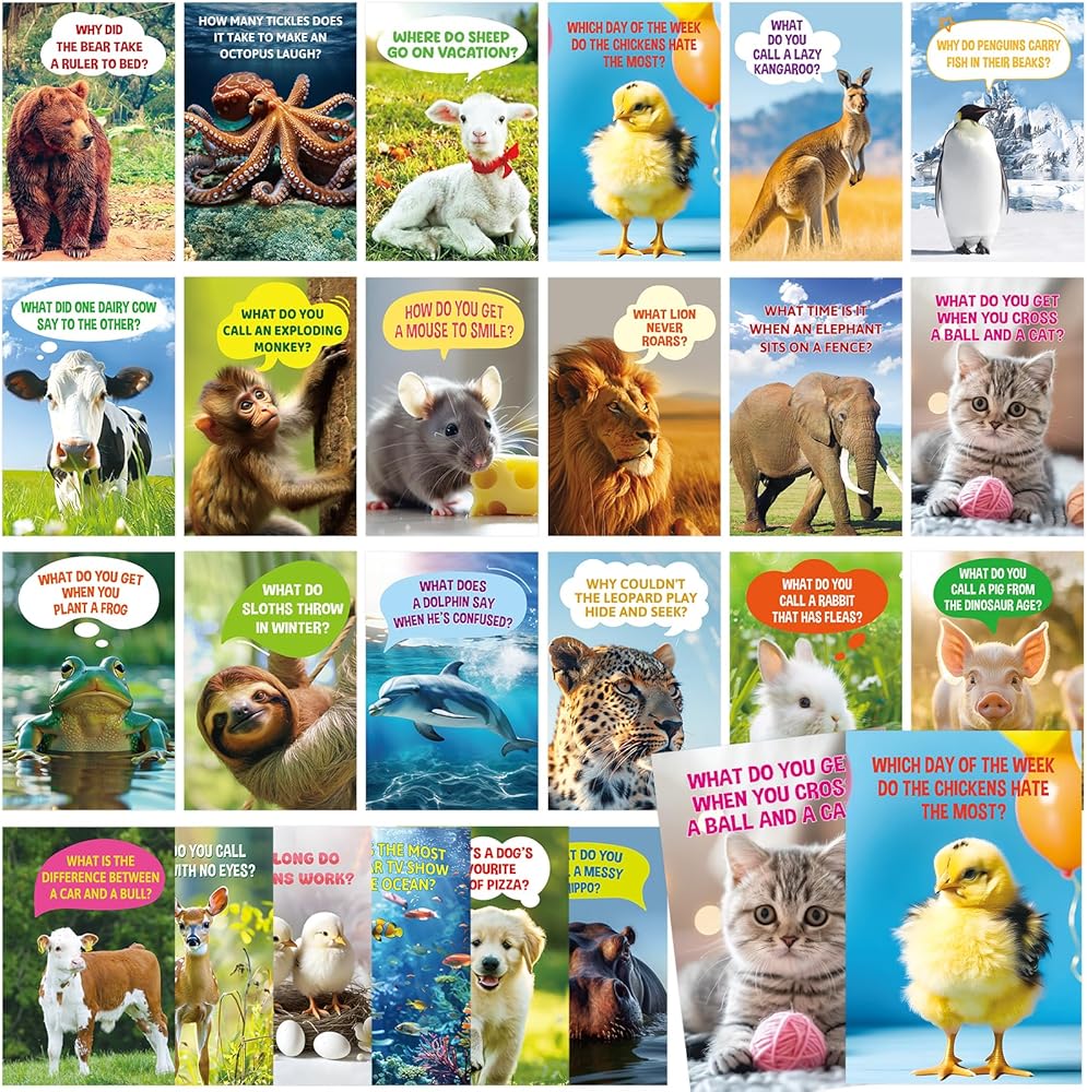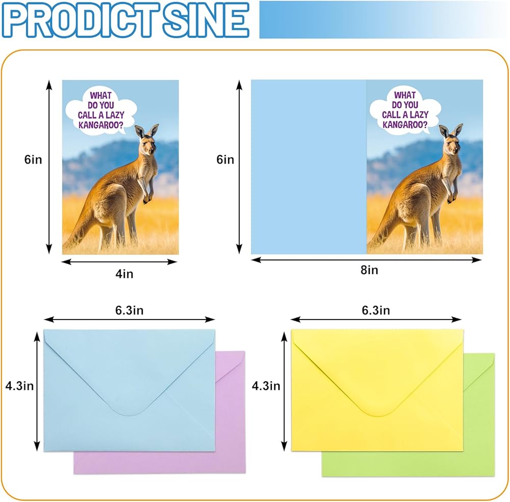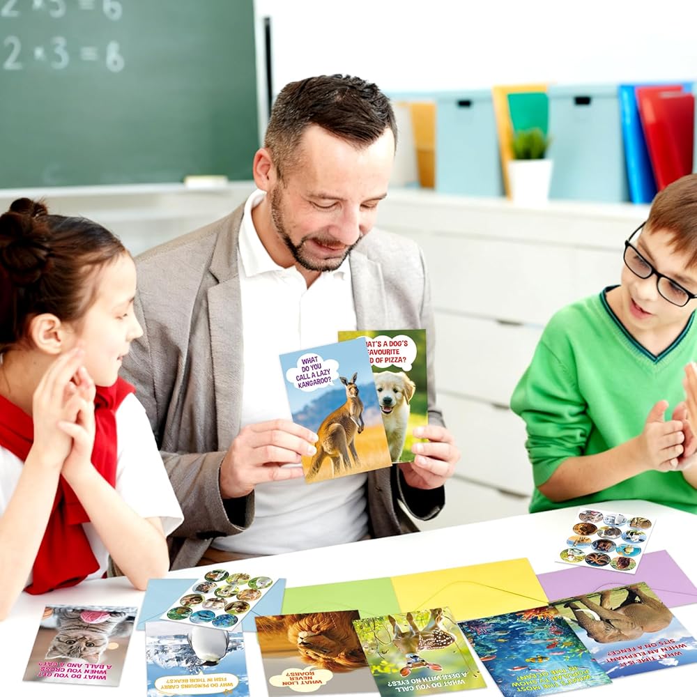 بطاقات نكتة حيوانات مضحكة من تريجر كوف، لا تتكرر، بطاقات تهنئة مضحكة للحيوانات، التفكير في بطاقات ملاحظات مع مغلفات، ملصقات للأطفال والطلاب والمدرسين وأنشطة الفصول الدراسية، لوازم الحفلات 24 قطعة