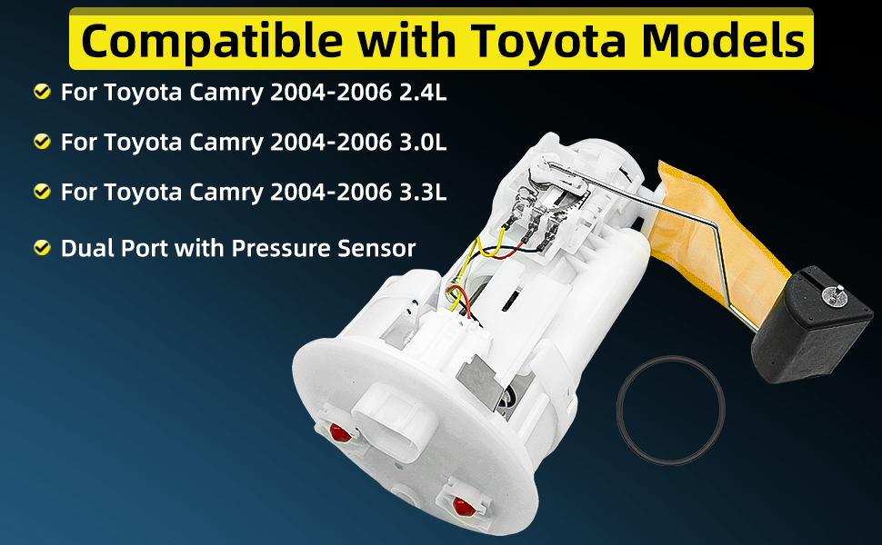 نماذج متوافقة: مجموعة مضخة الوقود مناسبة لتويوتا كامري 2004 2005 2006 2.4L 3.0L 3.3L L4 V6 منفذ مزدوج مع مستشعر الضغط
