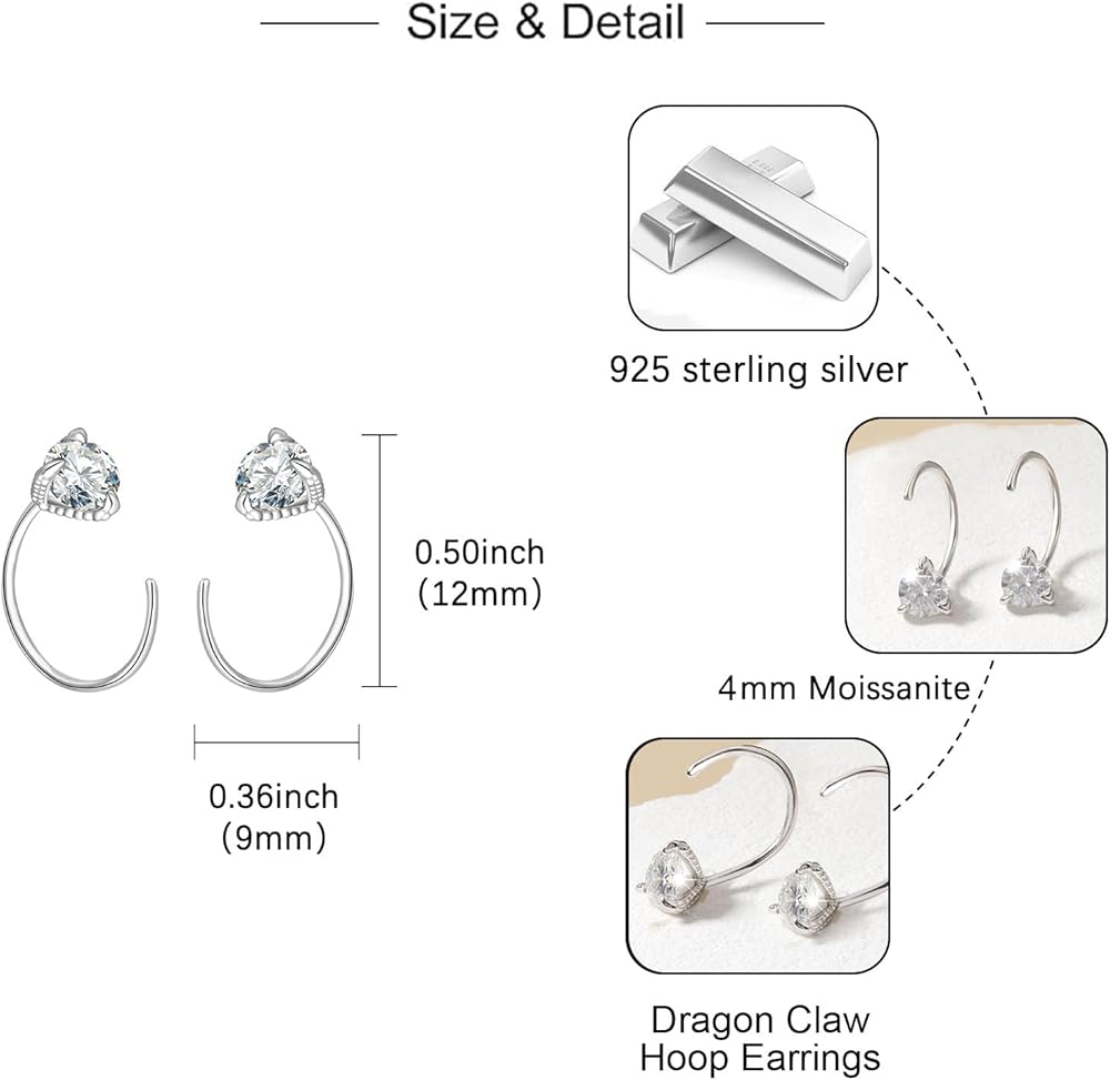 Product Size: This Moissanite dragon claw earrings hoop contains 2.0g of 925 sterling silver, the Moissanite dragon claw earrings hoop has 2 Moissanite with a size of 4mm/0.3ct, 20 gauge, including GRA certificate. The Moissanite jewelry is naturally shiny. This Moissanite dragon claw earrings hoop adds a touch of style and sophistication to your overall look.
